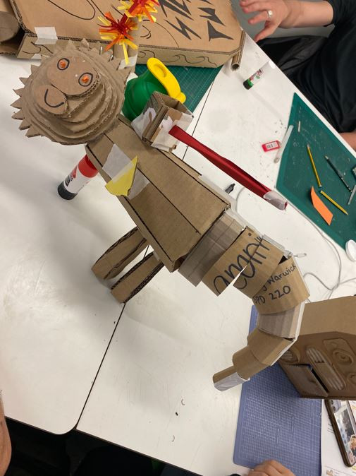 Over several weeks, the students brought more ideas to life, all from the minds of children at Mawnan C of E VA Primary School. Three third year Sustainable Product Design students; Molly, Honey and Issy held workshops at the school to cultivate the ideas and brought them to the SPD first years to get making!