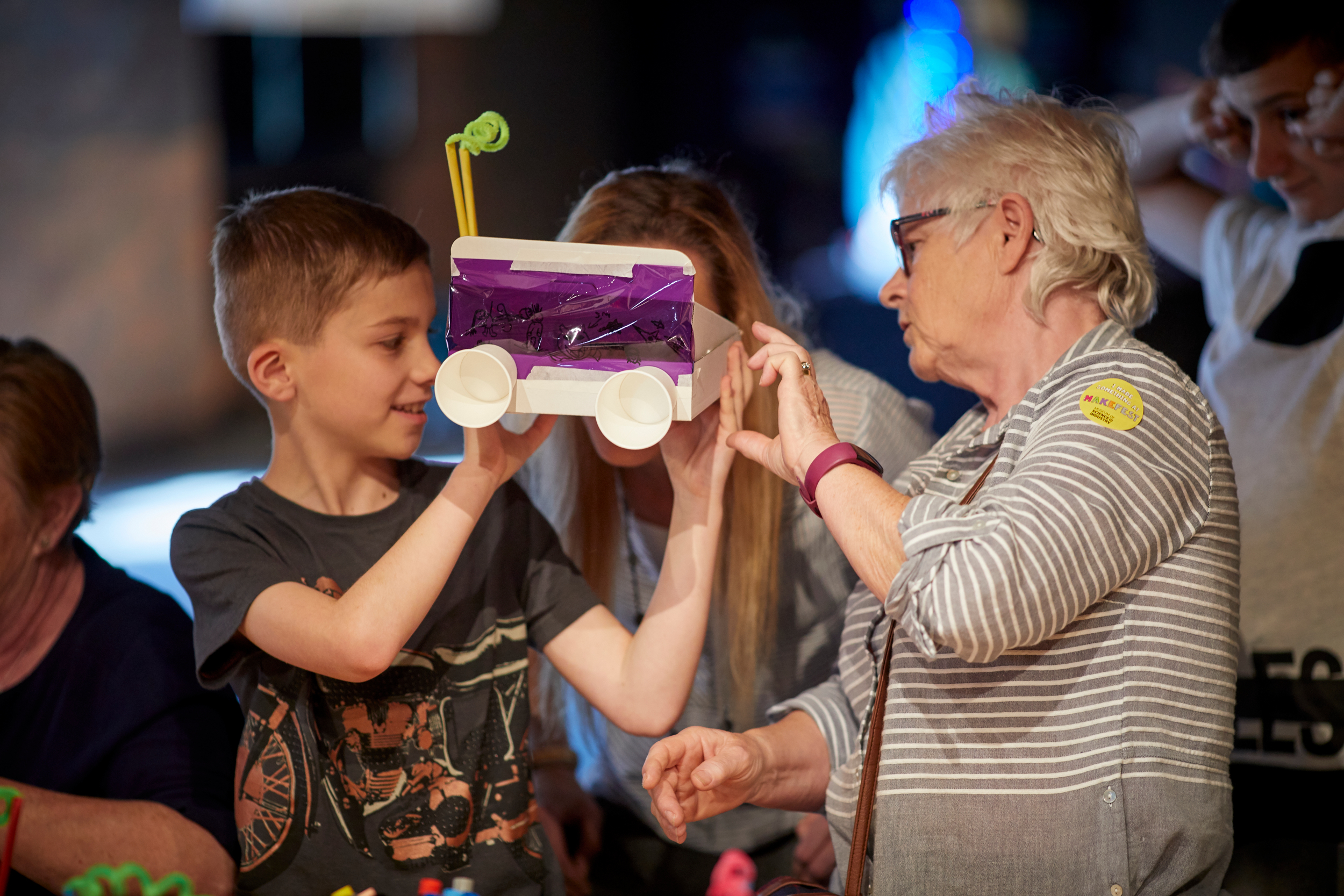 On Saturday 26th May, Little Inventors took a trip to Manchester Museum of Science and Industry to take part in MakeFest. We ran two workshops; a masterclass where adult makers learnt cardboard modelling techniques and a family activity inventing future viewing binoculars.
