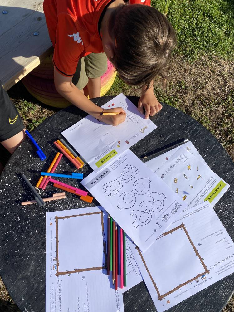 Ellie Birkhead, Design Lead at Little Inventors, conducted the workshop. She had a blast working with lots of Cornwall's talented young minds, "campers and locals alike joined us for an earth-themed workshop. Energy, creativity, and ideas were buzzing, helped by the wonderful indoor-outdoor space we were able to use at the Eco Park. We had some amazing drawers come to the workshop who were able to convey their incredible planet protecting ideas on paper. Thank you to all who joined us!"