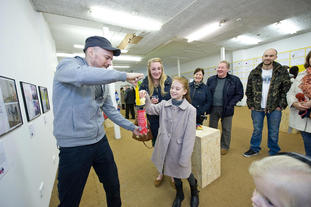 A large vacant shop was hired on Sunderland’s busy Fawcett Street and transformed into an INVENTORS! exhibition of wonderful ideas and creations. The front windows and signage was designed and drawn by Dominic Wilcox and attracted great attention from local people.