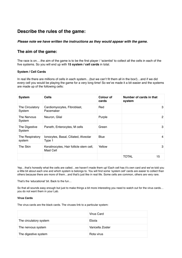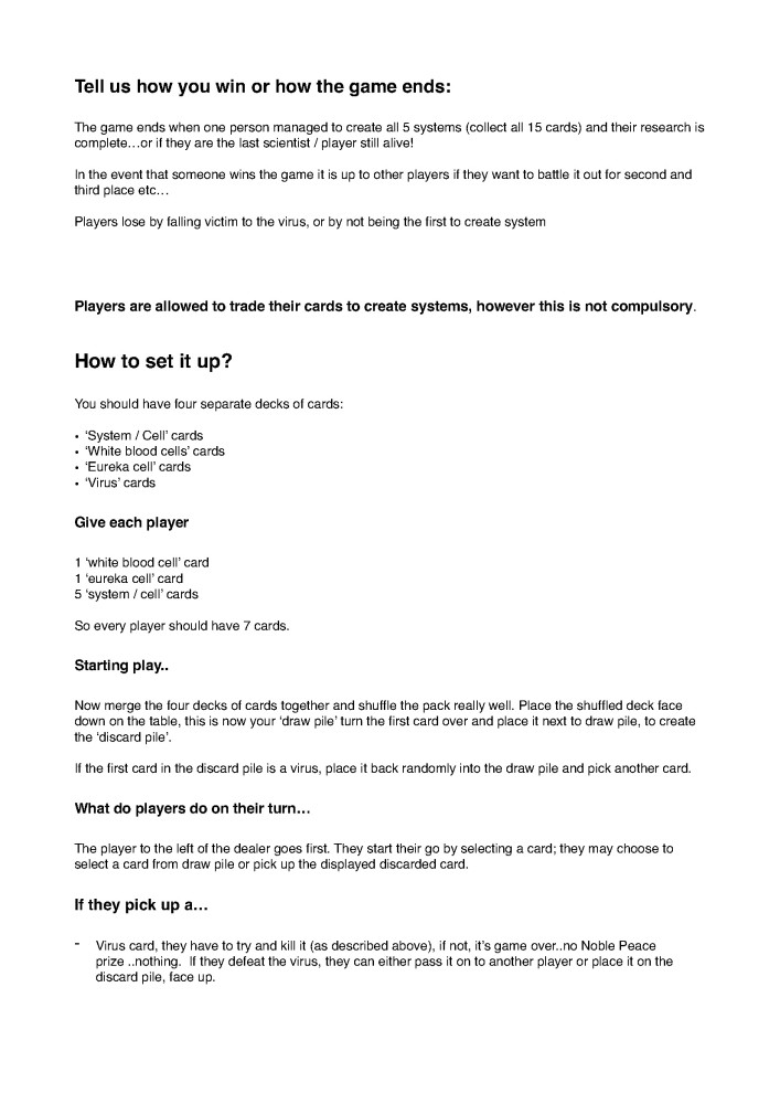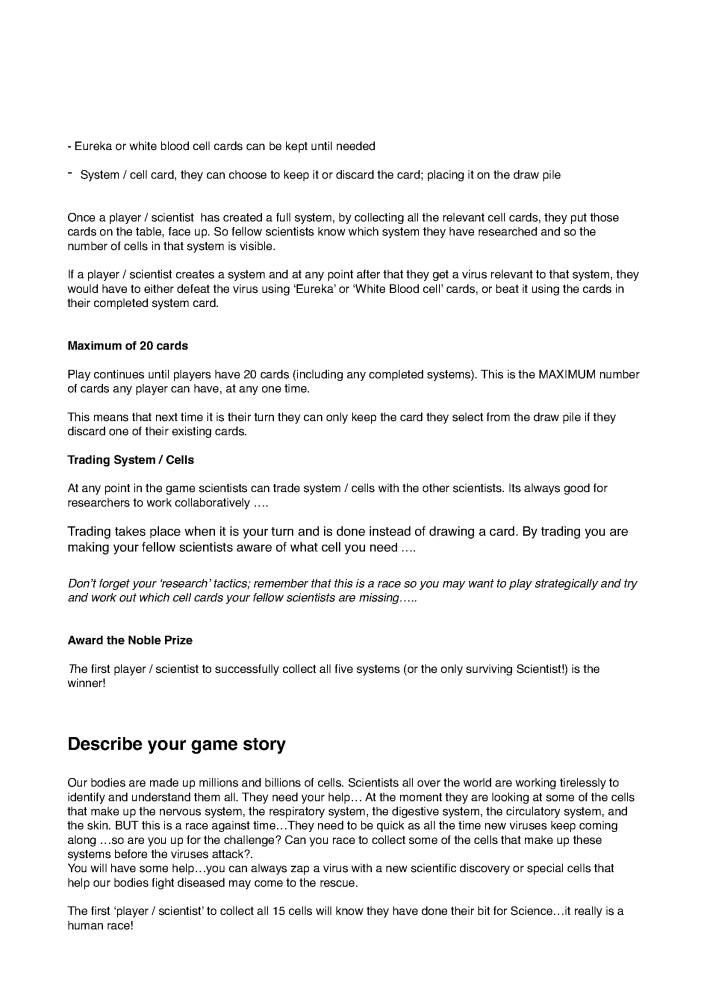 After lots of testing the gameplay was modified to give it a closer link to the feeling that the players are working in labs. We didn't want any real battling between players in the game as that doesn't reflect what really happens in real life. But it is a game so it needs some elements of competition to make it fun. We wrote the final rules which were modified over 20 times before we were happy with them