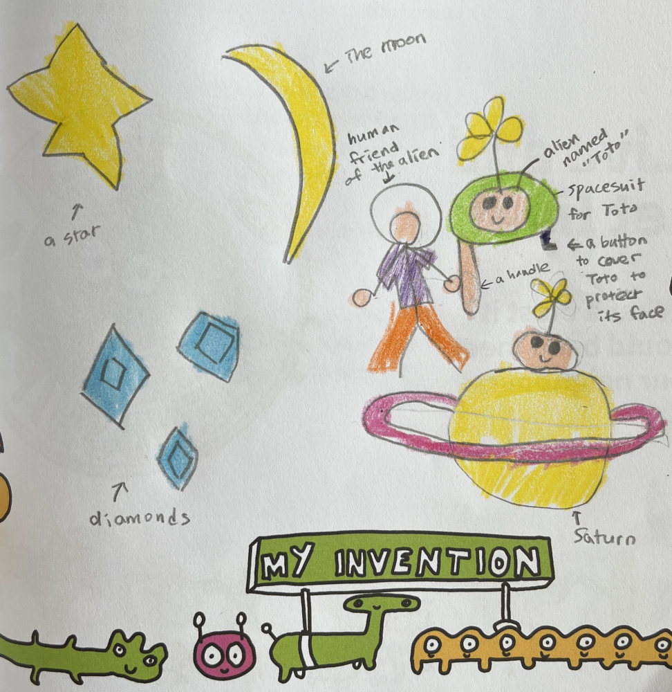 I love your drawing of Toto the aliens spacesuit Yuna! Excellent use of your knowledge of Saturn's atmosphere to design a suit that will protect them from dust and poisonous gases there. After all it's not just humans that want to explore safely! I wonder if Toto is from Saturn or if he is a friend that has joined from another planet on the journey from earth? There's a bigger story to your invention I think! Keep up the great inventing!