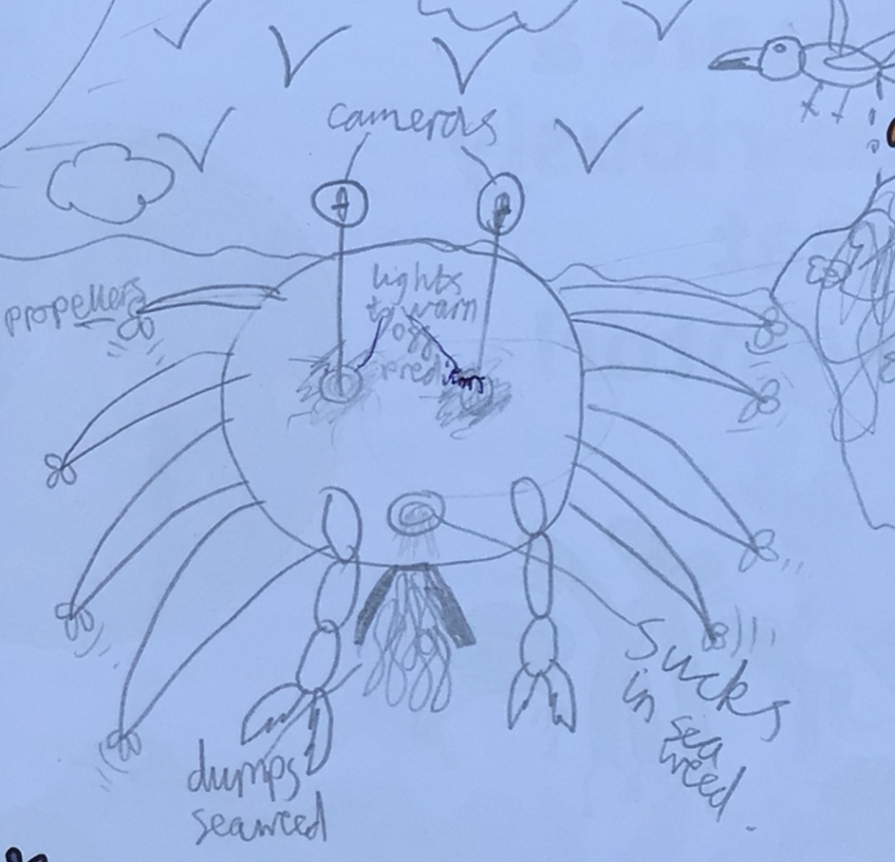 Thank you for sending in your invention Jessie, Sofia and Georgie! What an inventive solution to help protect the invaluable corals in our oceans. The diagram is very clear and well planned out. It's great that you have chosen the robot to be in a crab form, so it blends into its environment. I thought the added propellors on the legs of the crab were a great touch and will allow the Coral Crab to access harder parts of the coral. Brilliant work!