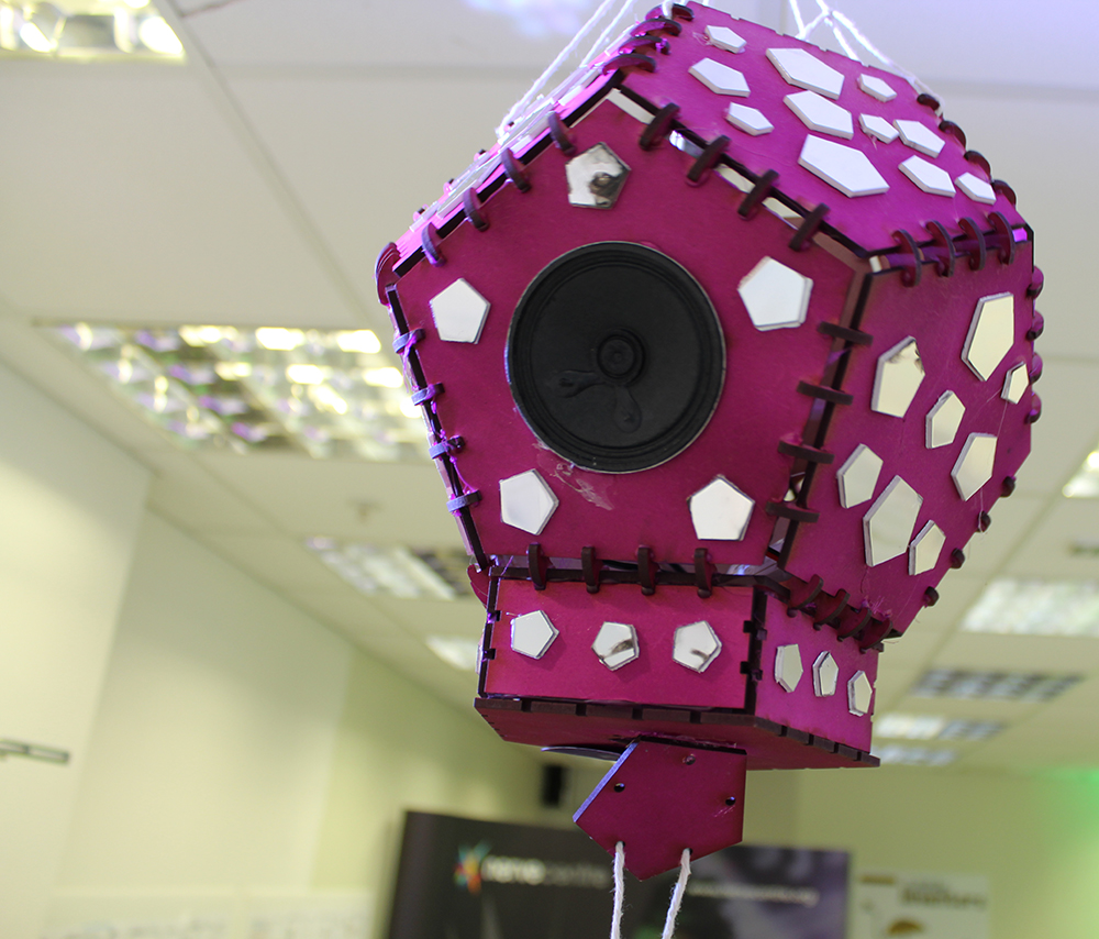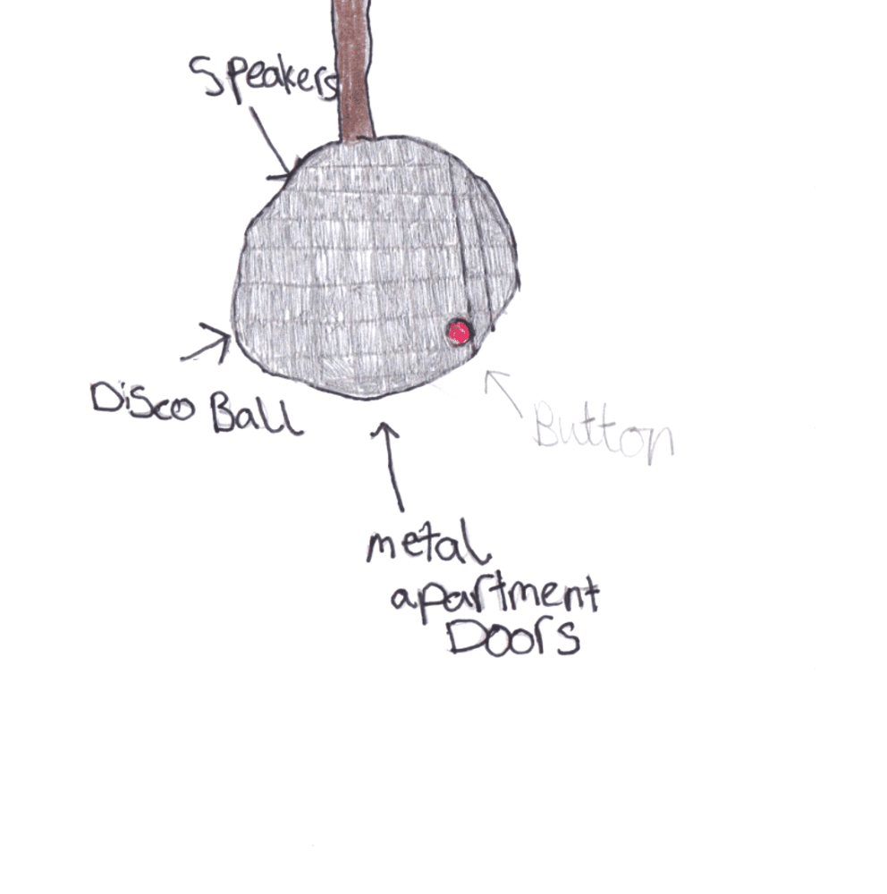 Disco ball speakers with sweets inside. Jessica, this is so much fun! Of course, from now on all disco balls should be full of sweets. Maybe they already are!? The design reminds me a bit of the Death Star from Star Wars. But this one explodes with sweets. Such a lovely idea that's so bonkers it might actually just work. Fantastic inventing! What's next?