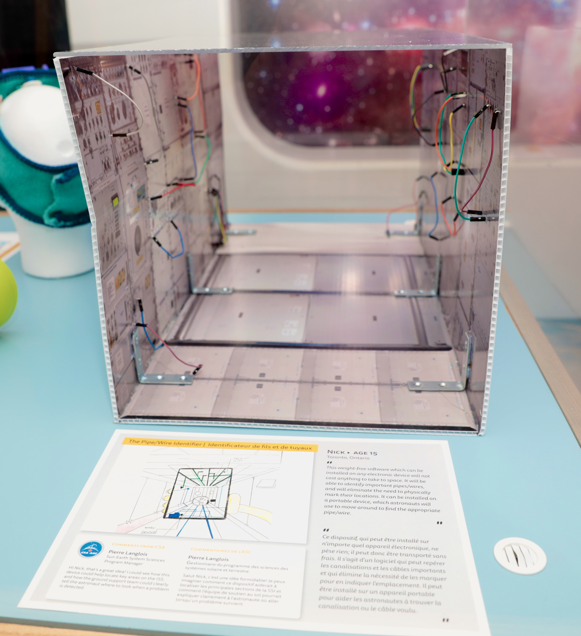 STEAMLabs were really enthused by Nick's idea - Director Andy Forest said:'This idea is genius! Can't wait to work on it!' They built a small model of a space station interior, and use Augmented Reality to add on the pipe/wire digitally as an overlay. Viewers are able to add the AR app to their own phones to experience it for themselves.