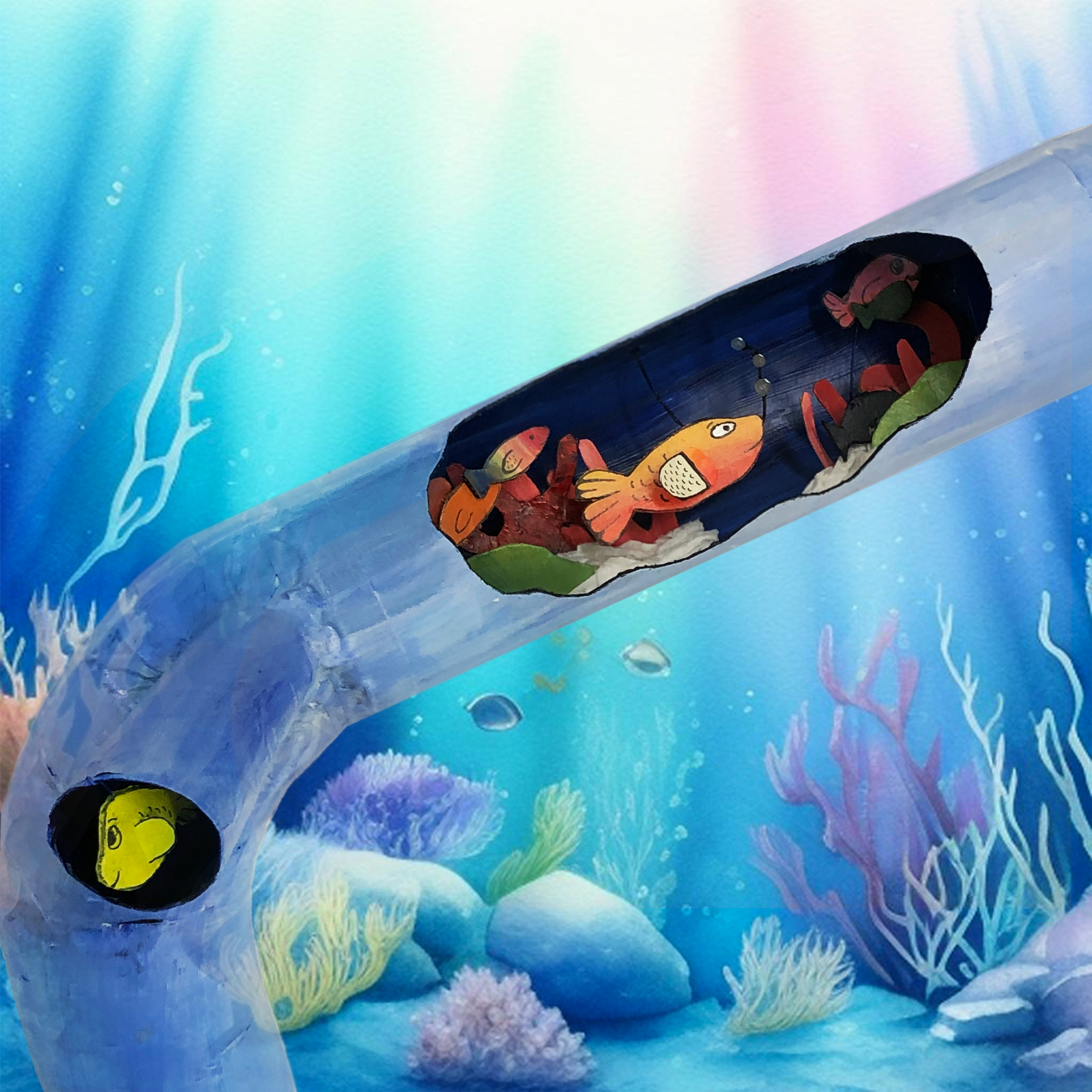 This little fishy was the most important fish in the tube. It was going to be right in the centre and get lots of attention! I painted it carefully and added some little bubbles to float around as it swam through the protection tubes.