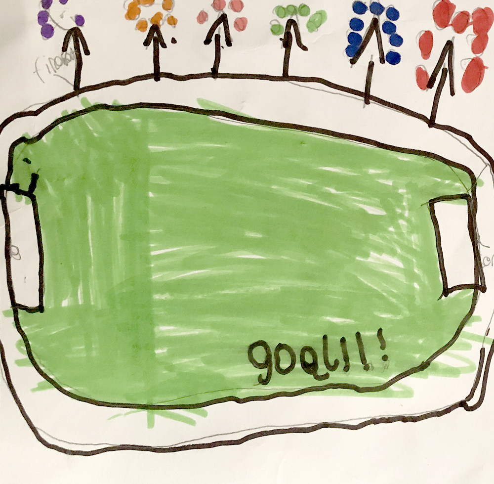The idea is to convey a football game being played and to show the fireworks being set off once a goal is scored.