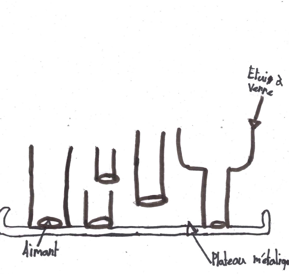 Metal pieces were added to the tray, so that cups and glasses can be slotted in and secured.