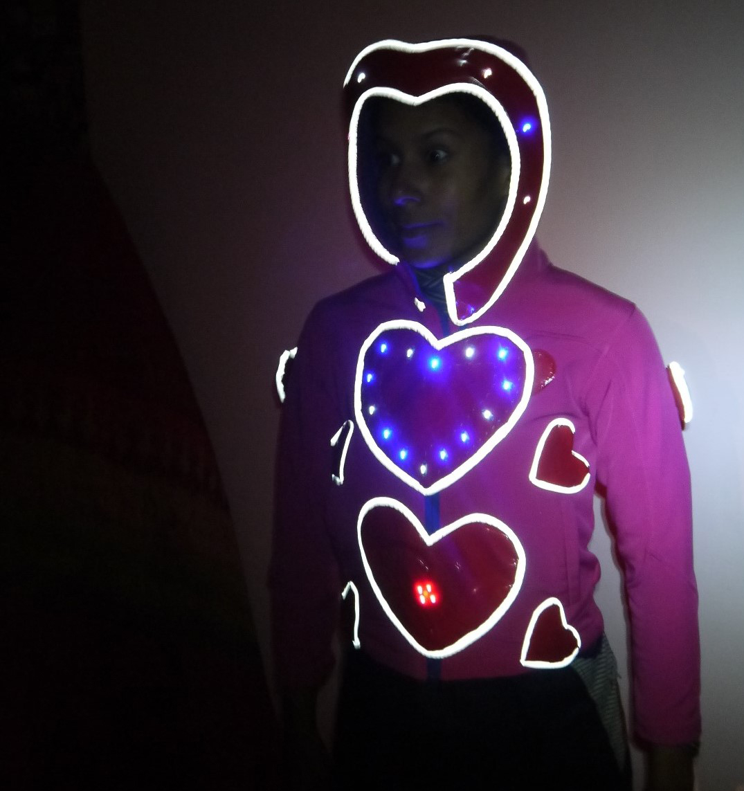 Maesie’s Love Heart Jacket is a light up coat that keeps people safe in the city, and it helps to spread the love too!
