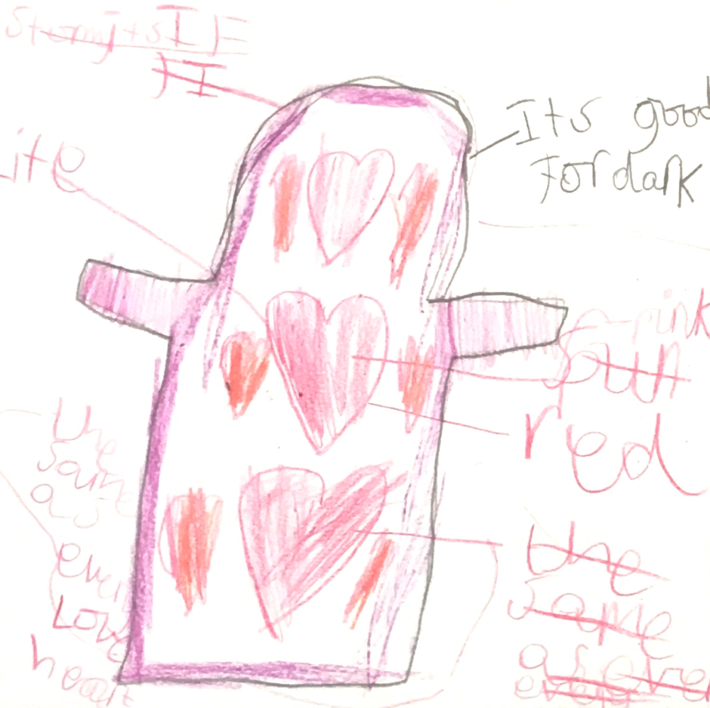 Maesie's drawing for the Love Heart Jacket certainly stands out!