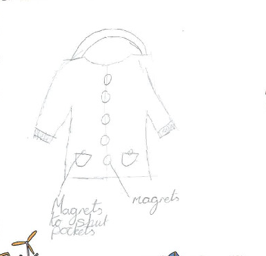 What a brilliant idea Abbie. Arthritis can make it especially hard to do fiddly things like button a coat or pockets. Your Magnetic Rain Mac would really help people to keep warm and dry even when suffering with Arthritis! I wonder would other items of clothing or objects you could invent with this in mind? What would make it easier? Keep inventing! Great work :)