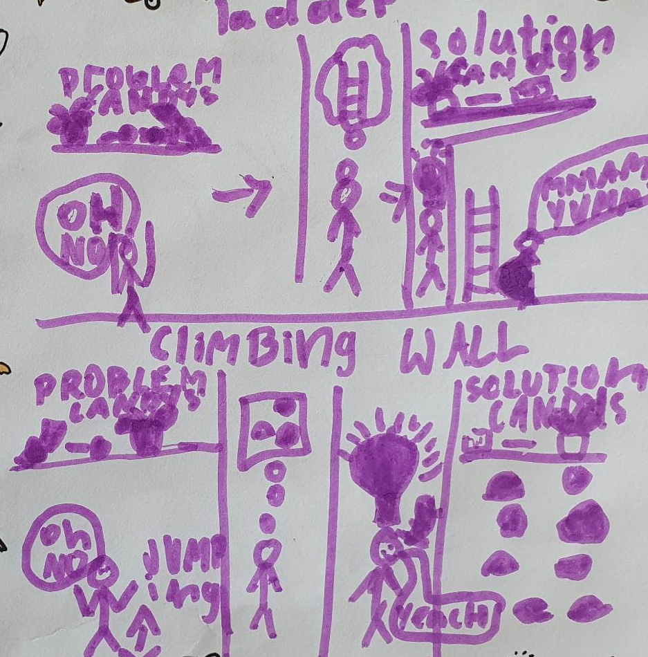 Wow Marysia, it's great that you have thought of two ideas to help us reach things on high shelves - many inventors come up with lots of ideas before they decide on a final idea! I really like both your ideas but I think my favourite would be the climbing wall - imagine having a climbing wall in your kitchen just to reach the top shelf! I really like how detailed you have made your drawings, they are really good! Great work Marysia, keep inventing!