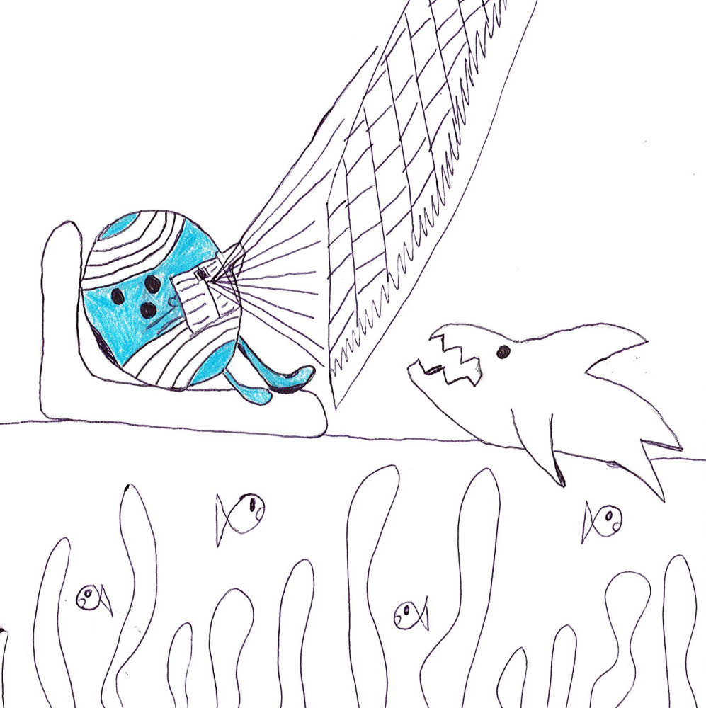 This is a very clever idea, Alexa. Your land projection would definitely fool sharks and help to protect Mr Bump. Imagine the look on their faces when they think they've suddenly bumped into land! This way Mr. Bump could float around in peace and enjoy his holiday. Thanks for this invention idea, Can you think of any other inventions to help the clumsy Mr. Bump?