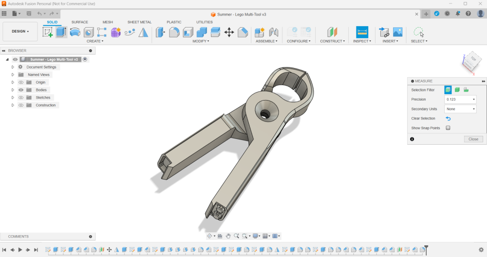 I've been thinking through the various ideas we discussed and have started to create a first prototype design for a Lego Multi-tool.  So far, it incorporates 3 main features: