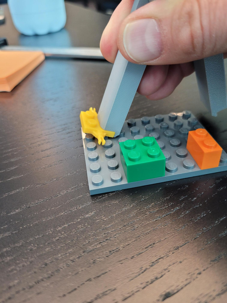 6. The 3D printed plastic surface of the jaws can grab Lego blocks okay, but it really needs to be squeezed tightly.  It doesn't work the best though.  I think I'll change the shape a bit, and also rubber dip it so the jaws have some more grip.  Those changes should allow Jaxon to pick up pieces with only a little bit of pressure.