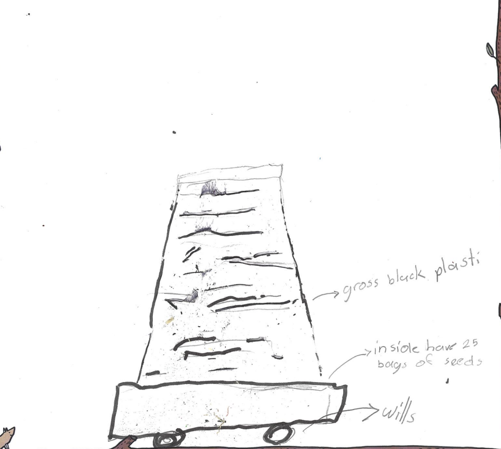 The wonderfully creative Maite has shared such a fantastic idea with the Plant Helper! 🌱 A seed dispenser that carries 25 types of seeds sounds like a brilliant way to help areas recover from deforestation. Have you thought about how the seeds could be dispersed effectively to ensure they grow well? Maybe a small water spray could be added to help the seeds grow faster! Keep dreaming big, Maite, I really love this idea – your imagination is already helping to make the world a greener place! 🌿