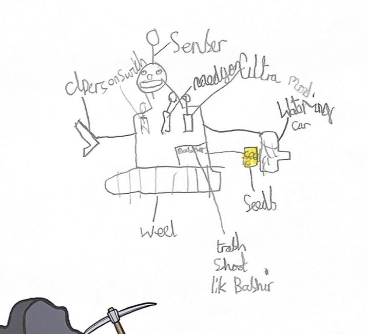 I have started to create the grabatron by using a big cardboard box as the body and making the head by wrapping paper-mache around a balloon and painting over it
