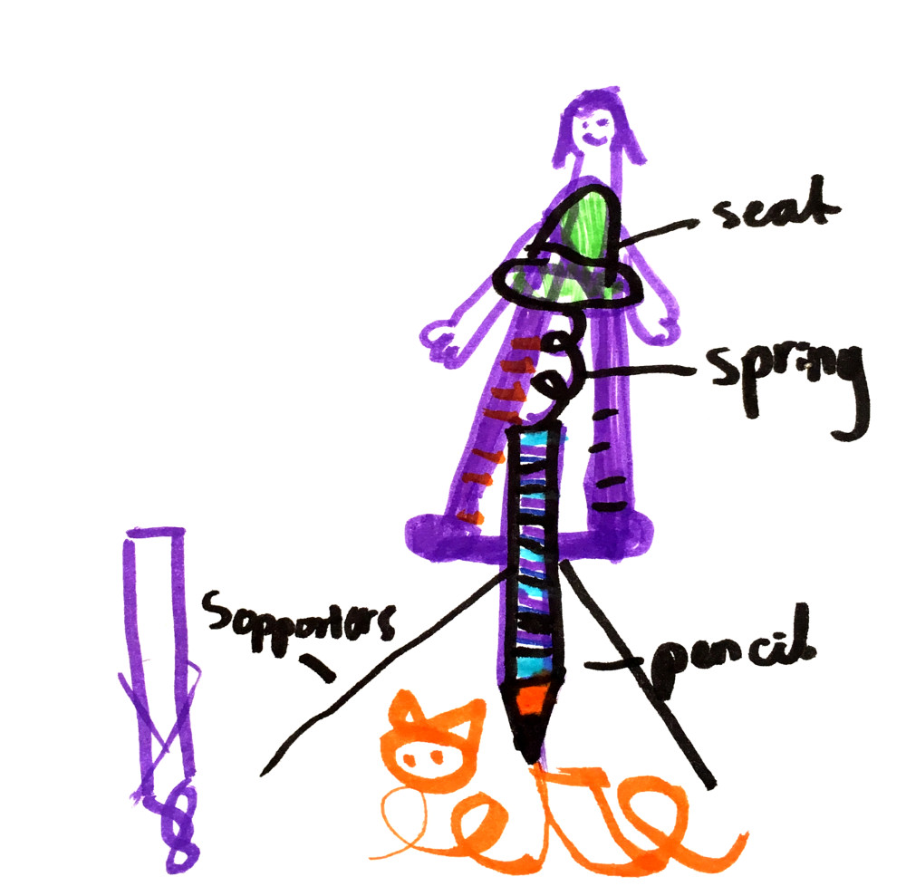 She used a bouncing ball with secret paints underneath to create a pogo stick that draws as you bounce! See more on Ella's blog post about the pogo pencil!