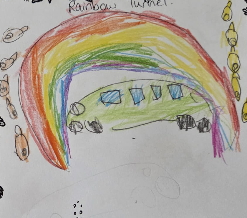 What a marvellous idea, Caden! 🚂 Your Rainbow Tunnel is a fantastic way to keep the sea creatures safe while enjoying a colourful underwater adventure. 🌈 Have you thought about how the lights could change colours inside the tunnel to make the journey even more magical for the passengers? Keep dreaming big, Caden – your creativity can light up the oceans!