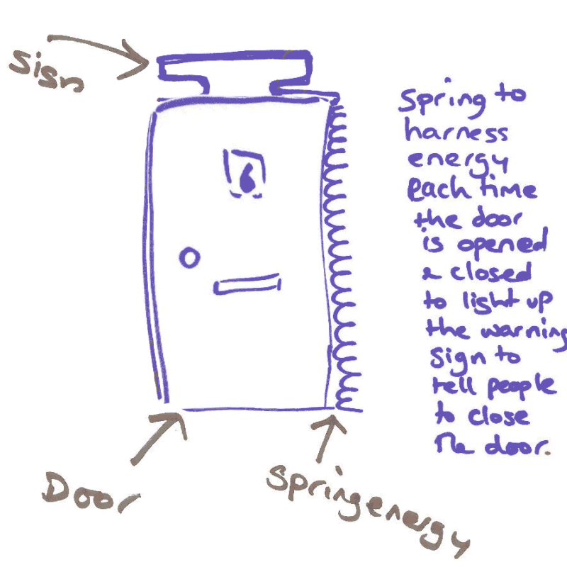 Leon created not one, not two but FIVE inventions when he took part in the Energy Challenge at a workshop at Seaton Valley library. The Reminder is doubly energy clever as it not only creates BUT ALSO saves energy. Leon got inspired by thinking about his sister, who often forgets to shut the door and then the room gets cold.
