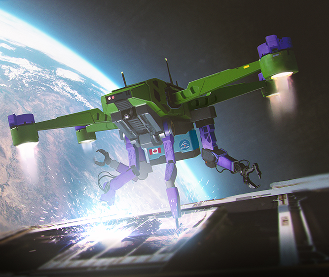 The repair drone was brought to life in the form of this detailed digital render. Created by Cristian Vasquez at AtomHawk.