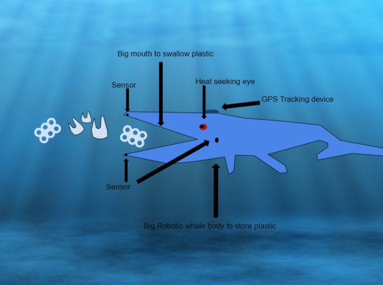 Well done for all of your hard work Aiden - it's fantastic! You have really thought about and included so many methods of finding the ocean waste. This means that no stone will go unturned as far as improving ocean health. I like the heat signature technology which will ensure no sea life are in danger. You have thought about the full process of your invention; how waste will be found, collected and removed. Amazing Aiden, keep it up!