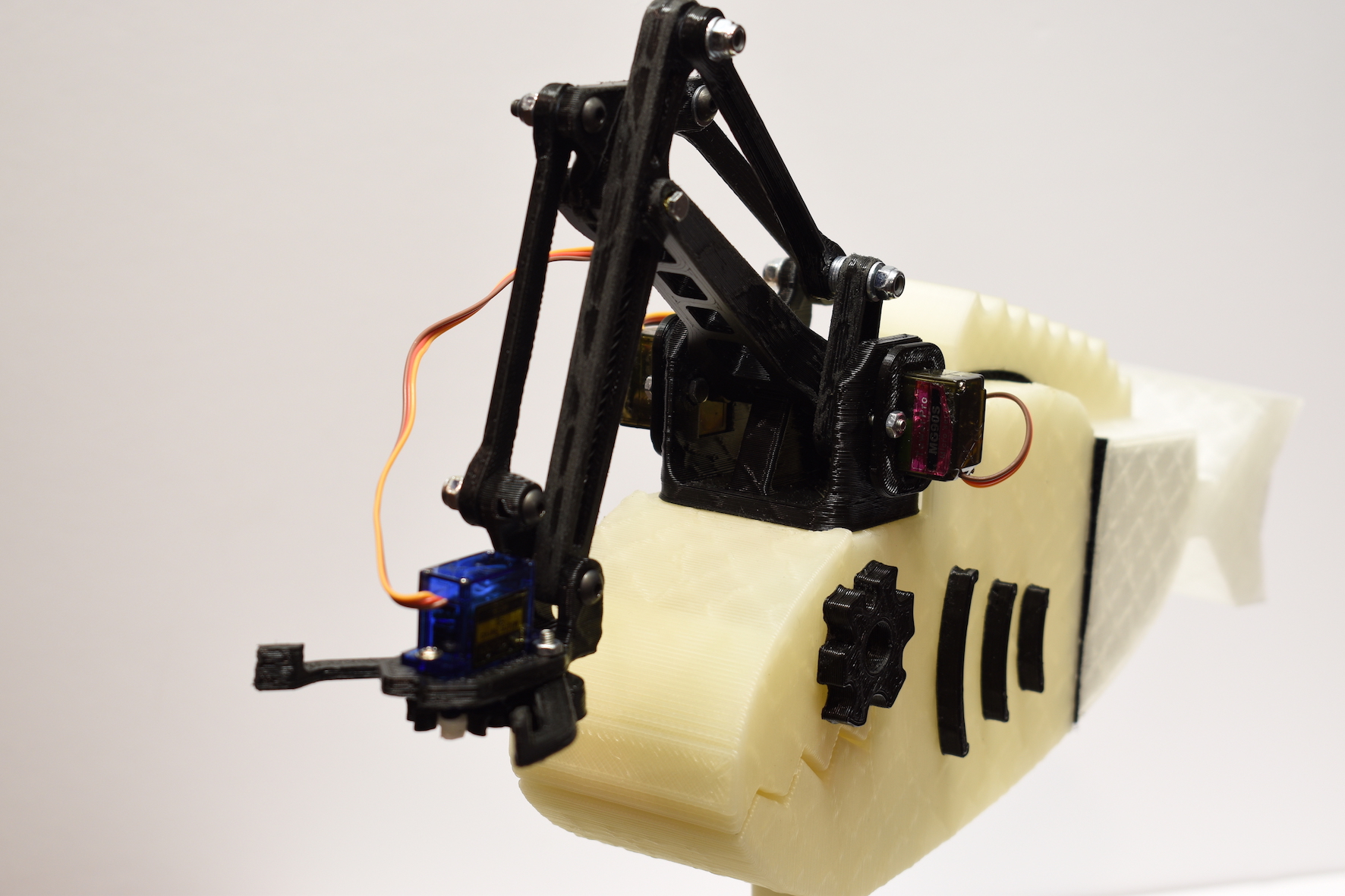 I did something similar for the eye, I really liked how Jayla drew it and wanted to preserve its style completely because it stood out to me as the most prominent feature when I first saw her artwork. For this, I imported the image of Jayla’s robot fish eye into a graphics editor and isolated the shape of the eye, then I uploaded the image to the 3D modelling software TinkerCAD to generate the 3D model. This was a quick and easy way to make a 3D model of a simple part from a real drawing, and because the softwares used are both, free any little inventors out there can do it too!