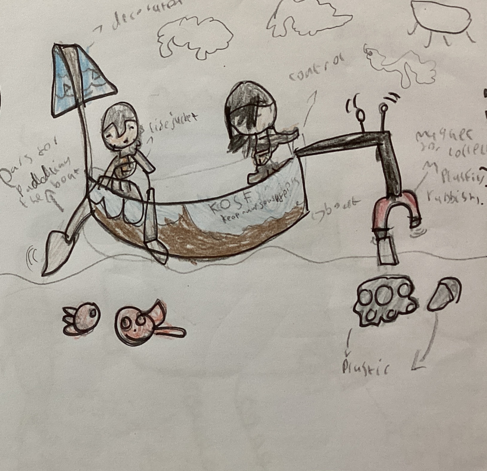 Great job Ella! It's brilliant how you've designed it for teamwork, with one person steering and the other collecting rubbish. The beeping antennas are a brilliant idea, they make it easier to find rubbish quickly! You’ve really thought about how to make ocean cleanup more efficient and fun. Keep coming up with amazing ideas like this, you’re making the world a better place.