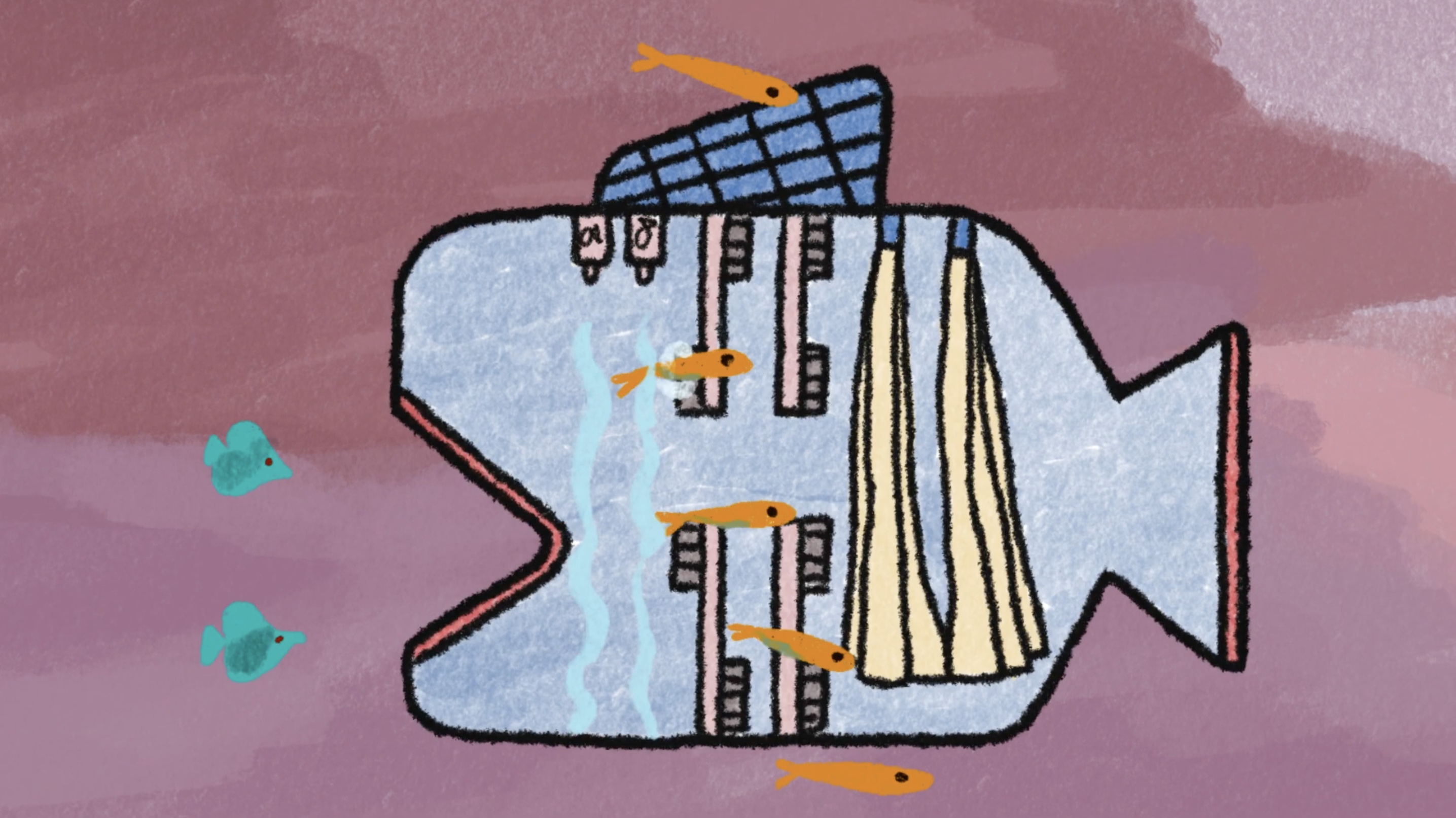 I've been watching the BBC for more fish movement inspiration! What caught my attention was the Mola Mola, the largest bony fish, it looks really cool so I wanted to have it in the animation. A big friendly fish swimming near the scrub-a-bub-bub I think really elevates the atmosphere. Animating fishes swimming across the screen is really satisfying, I can't wait to see the pieces all together.