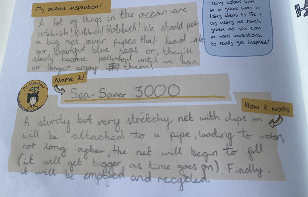 The βSea -Saver 3000β is a giant net attached to a pipe it will collect all the rubbish coming out from it.
