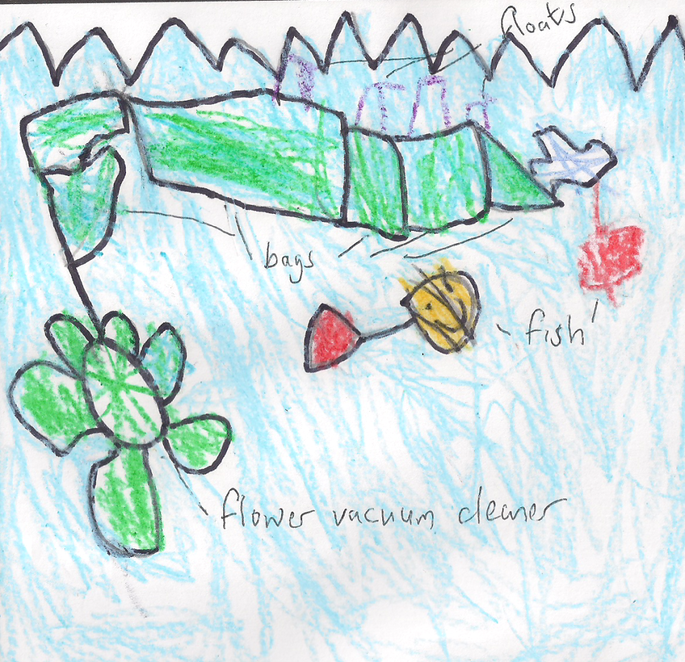 I love this because we know now about the amount of waste that gets dumped into the sea through programs like Blue Planet. This would be a fantastic invention which would help to protect our wealth of sea life. Oliver obviously cares about the environment and not only was the drawing great but really well thought out too!