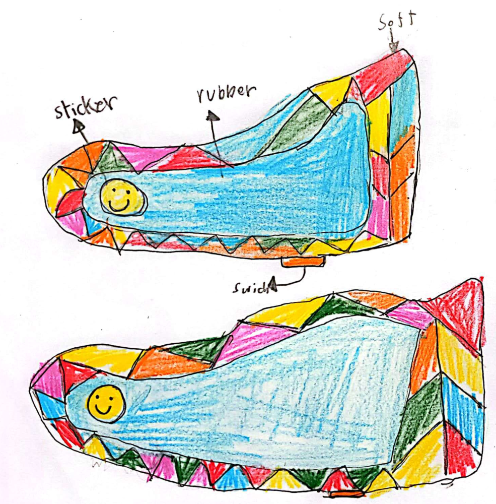 Wow Pippa! I can imagine whizzing around the shops, picking up all of my groceries in no time with your Speed Zip Shoes. I really like how instead of fire the energy emitted is transparent and soft. This would make it much more safe for lots of people to use. What an amazing drawing too, look at all those wonderful colours. I wonder what other inventions you can come up with!?