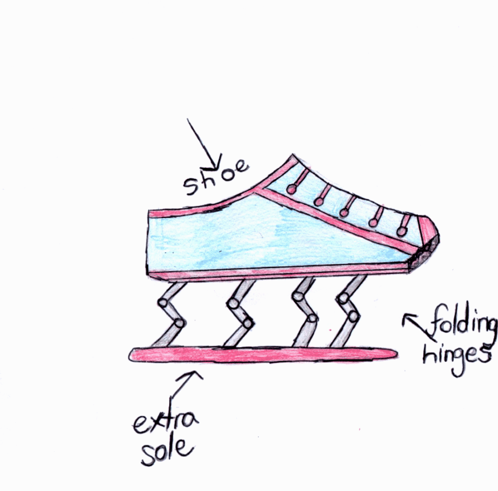 What a really interesting idea, Jessica! It's so very clearly explained and drawn that I could imagine it being sold somewhere already. It's great looking shoe by the way. Very stylish. How much more height would it offer? Could it go really tall like stilts? Keep that brilliant imagination of yours active and reaching for higher things :)