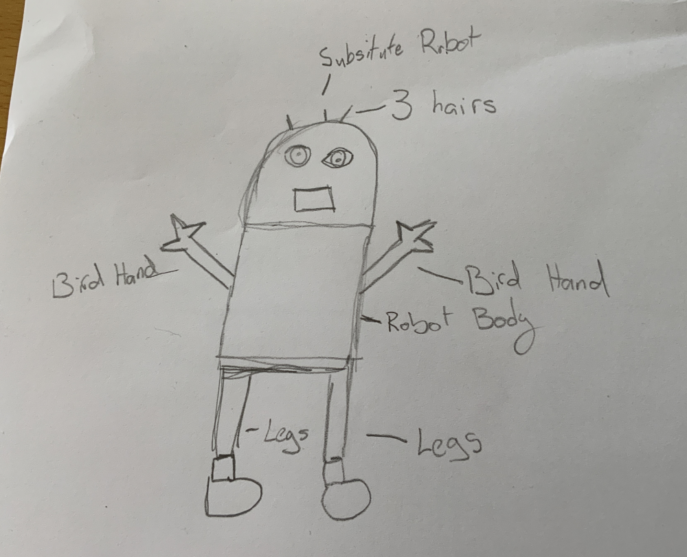 Elsa, what a superb and futuristic idea! Schools are always looking for teachers to cover classes and are definitely in need of your Substitute Robot. Your drawing is so clear and wonderful! I particularly enjoy that you have given your robot bird hands and hair, very imaginative indeed! Your robot's human-like appearance will definitely help children to feel more comfortable around their new teacher! With the mind of a teacher, your robot is bound to be supportive, kind and approachable, which are all qualities of an excellent educator! Well done Elsa. We look forward to reading about your future inventions!