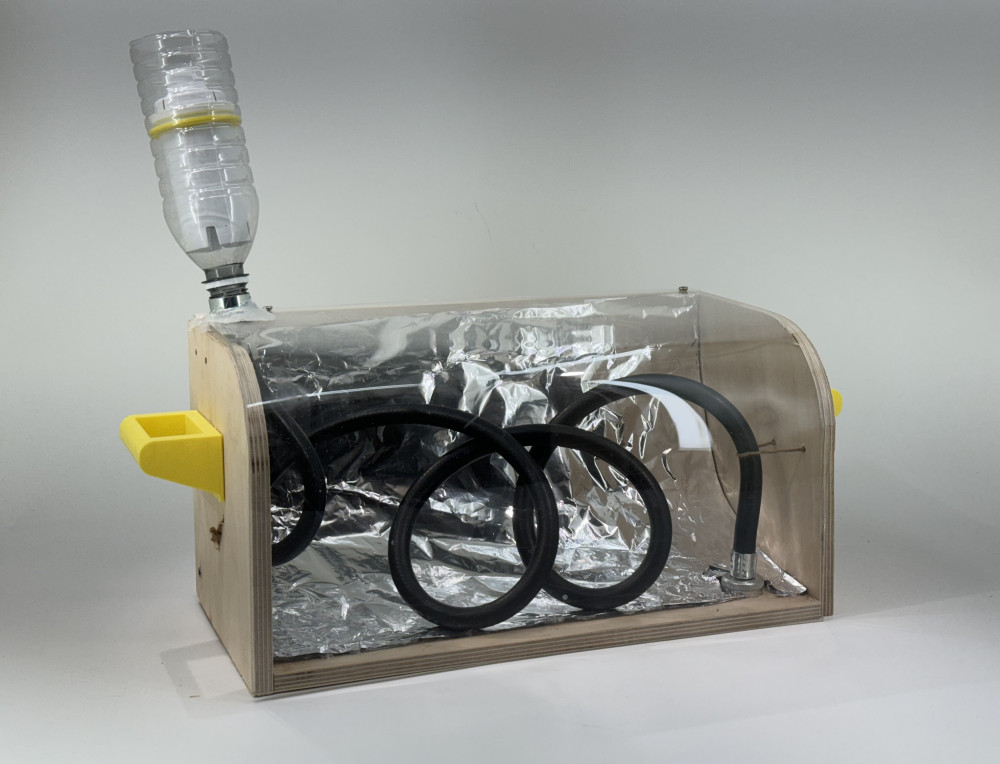 The main body is made of plywood and screwed together. It is made from recyclable materials. 3D printing technology is also used.