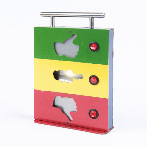 The Bad day, Good day, the Okay day was brought to life by one of our Magnificent Makers Alan Parker. This simple but effective machine can be carried and at a flick of a switch you can let people know exactly how you feel!