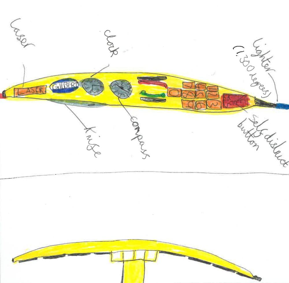 Paddy's invention is a survival phone. It can defend and help you with things as well as being a disguised phone. We really admire Paddy's creativity in selecting a banana shape, it's both fun and intriguing and a convenient shape too.