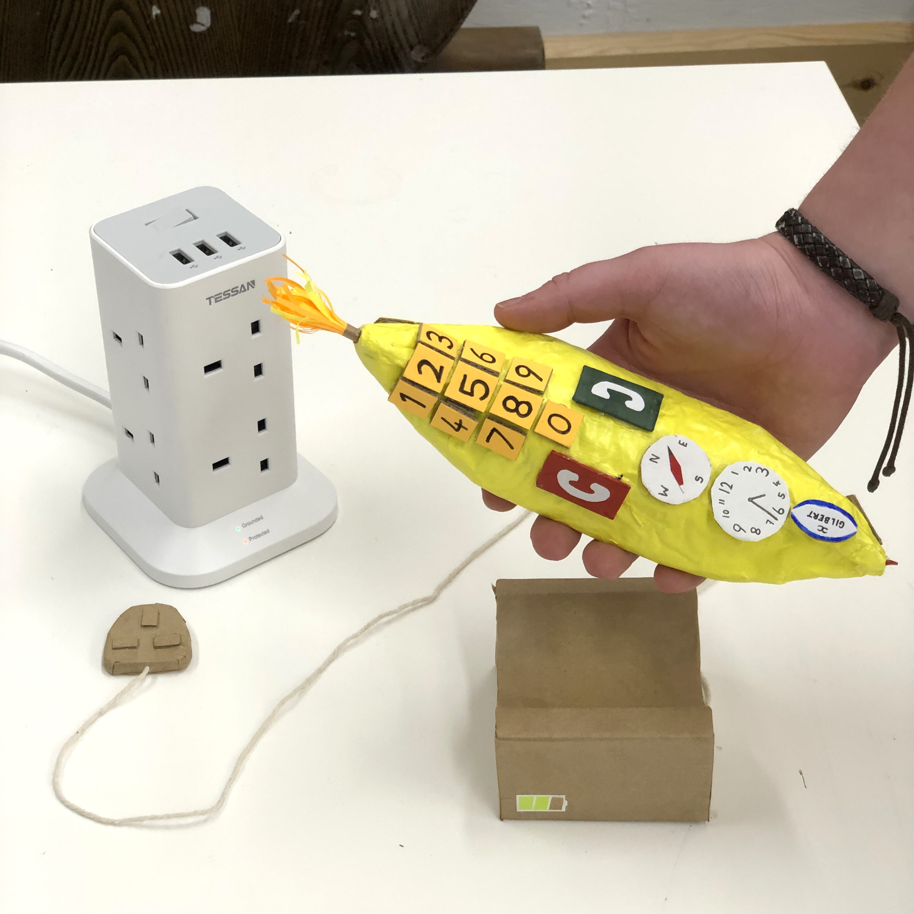 Paddy wanted to make a spy phone that was disguised as an uneaten banana. We thought this was such a fun way to repurpose unwanted fruit, and sneaky too!
