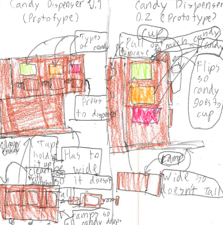 Everyone will love The Candy Dispenser! What a yummy invention. It's easy to just press a button and get a big reward - candy! I'm sure people would be pressing buttons all day to get at it. Well done for creating more than one version of your invention Minjae, our ideas often go through many changes before they are finally complete! Keep up the great work!