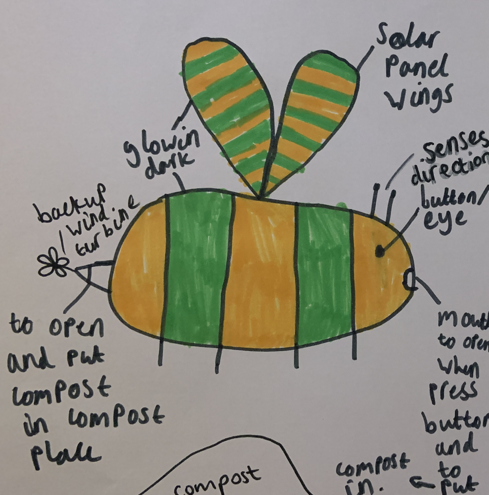 I really loved Harrison's idea for the Compost-Bee. It's such a useful invention! A simple idea that could help thousands of households reduce the amount of waste that goes into landfill sites needlessly. A lot of people don’t have outdoor space where they live so can't compost at home and although some places have a bin collection for compost, it’s not that common. The Compost-Bee could fly up to any home, all you have to do is book one in, even if you live right at the top of a tower block!