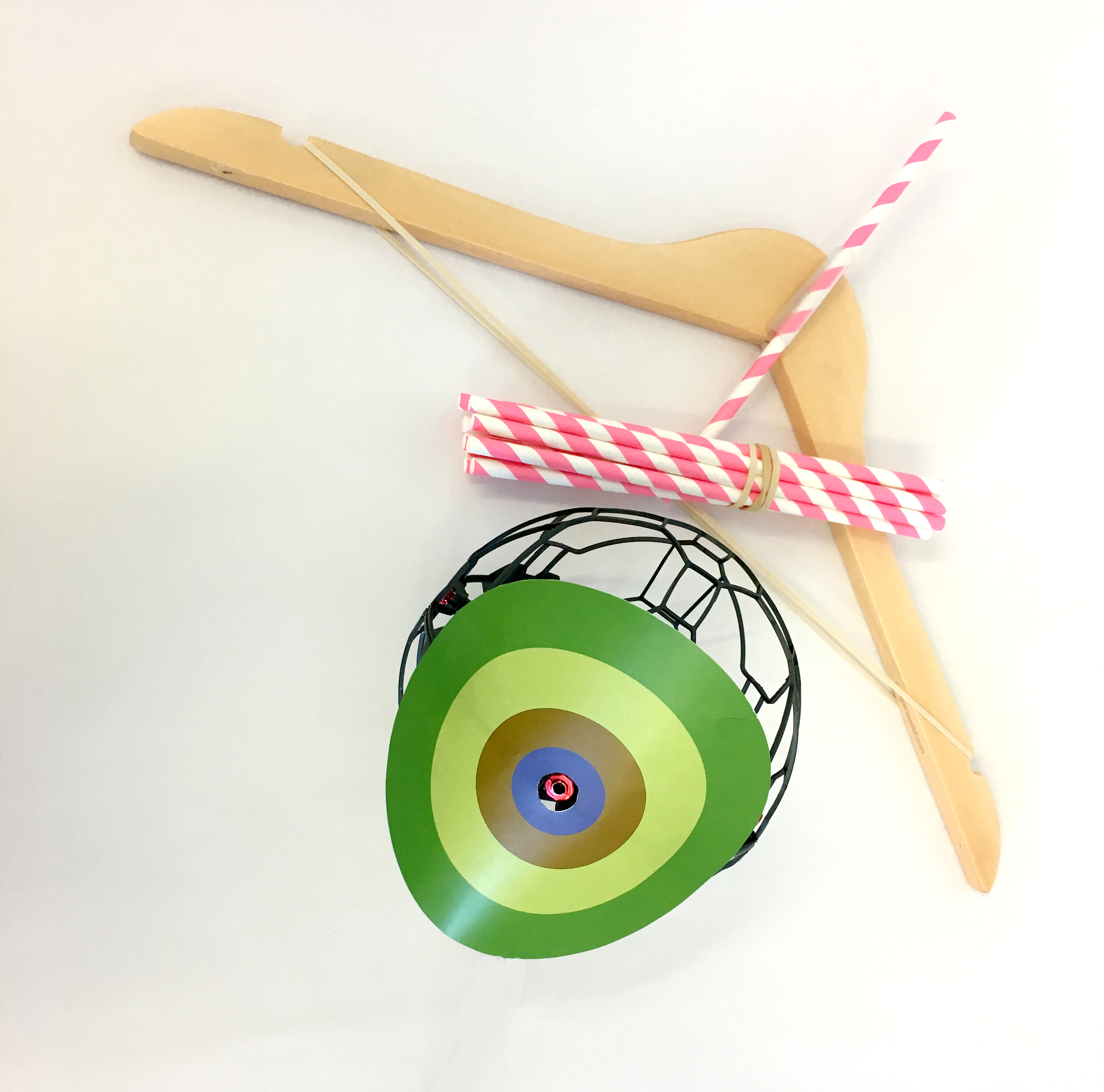 He made the invention real by adapting some drone technology. The flying bullseye really flies! You can fire straws at the moving target!
