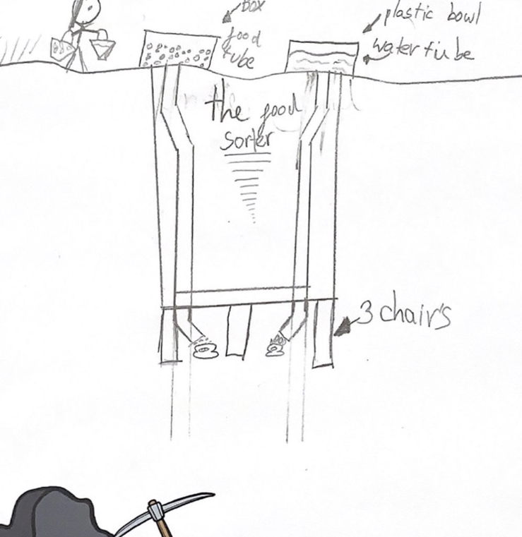 So since I had changed the whole concept of the Food Sorter, I instantly went to concepting and completing the finished model. I underwent a lot of trouble to do with structural issues with the cardboard box I found for the model but managed to pull it off somehow (with thanks to alot of tape).
