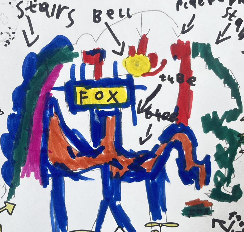 What an awesome idea, Connor! 🦊 You've come up with a super creative invention with the Fox Table Feeder. I love how you've got the fox doing an obstacle course to earn its meal. Have you thought about what kind of obstacles the fox might have to jump over or crawl under? Maybe you could include some tunnels or mini-jumps. Keep up the great thinking – your invention skills are super impressive! 🌟