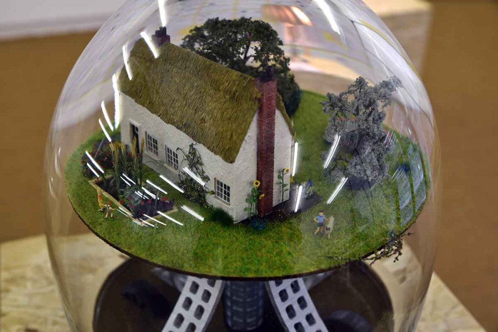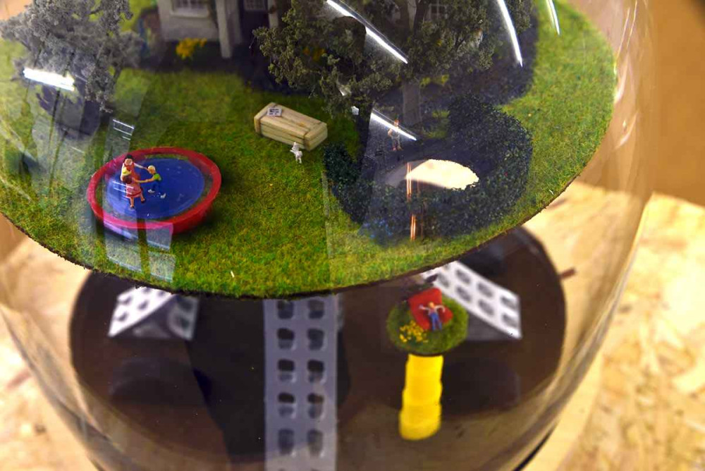 The glass dome was hand blown by at the National Glass Centre, Sunderland. It represents the ‘invisible blanket’ as described in the drawing.