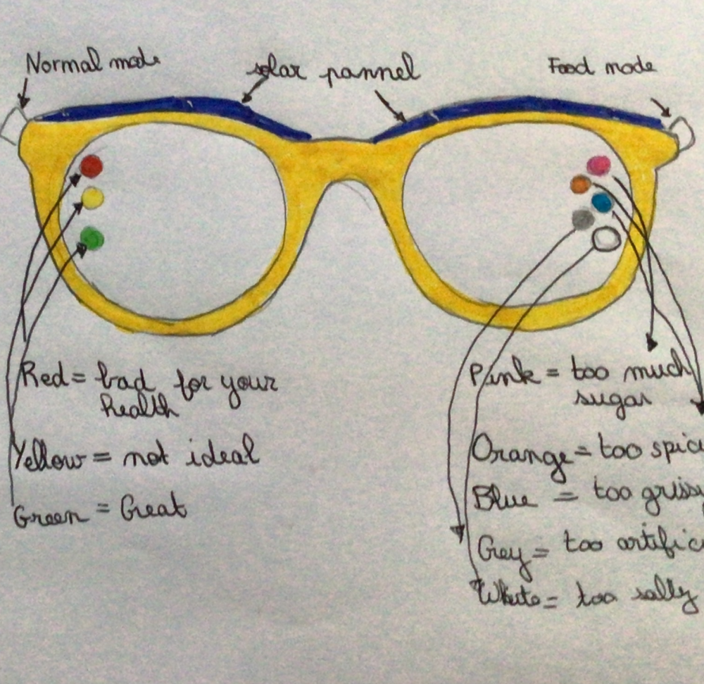 The glasses help people eat healthier. Just look at a food and they will light up green, yellow or red based on its nutritional content! Handy right? Although we might have to tactfully ignore the red light when there’s chocolate around….