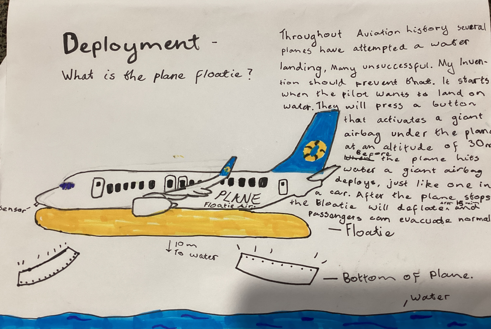 What a brilliant idea you've come up with, Louis! The Plane Floatie sounds like an amazing way to make water landings much safer. Your concept of using airbags to keep the plane above water is really clever and reminds me of superheroes with amazing gadgets! 😎 Have you thought about how pilots might train to use the floatie effectively in emergencies? 🌊 Keep dreaming big and inventing exciting things – the sky's the limit for you!
