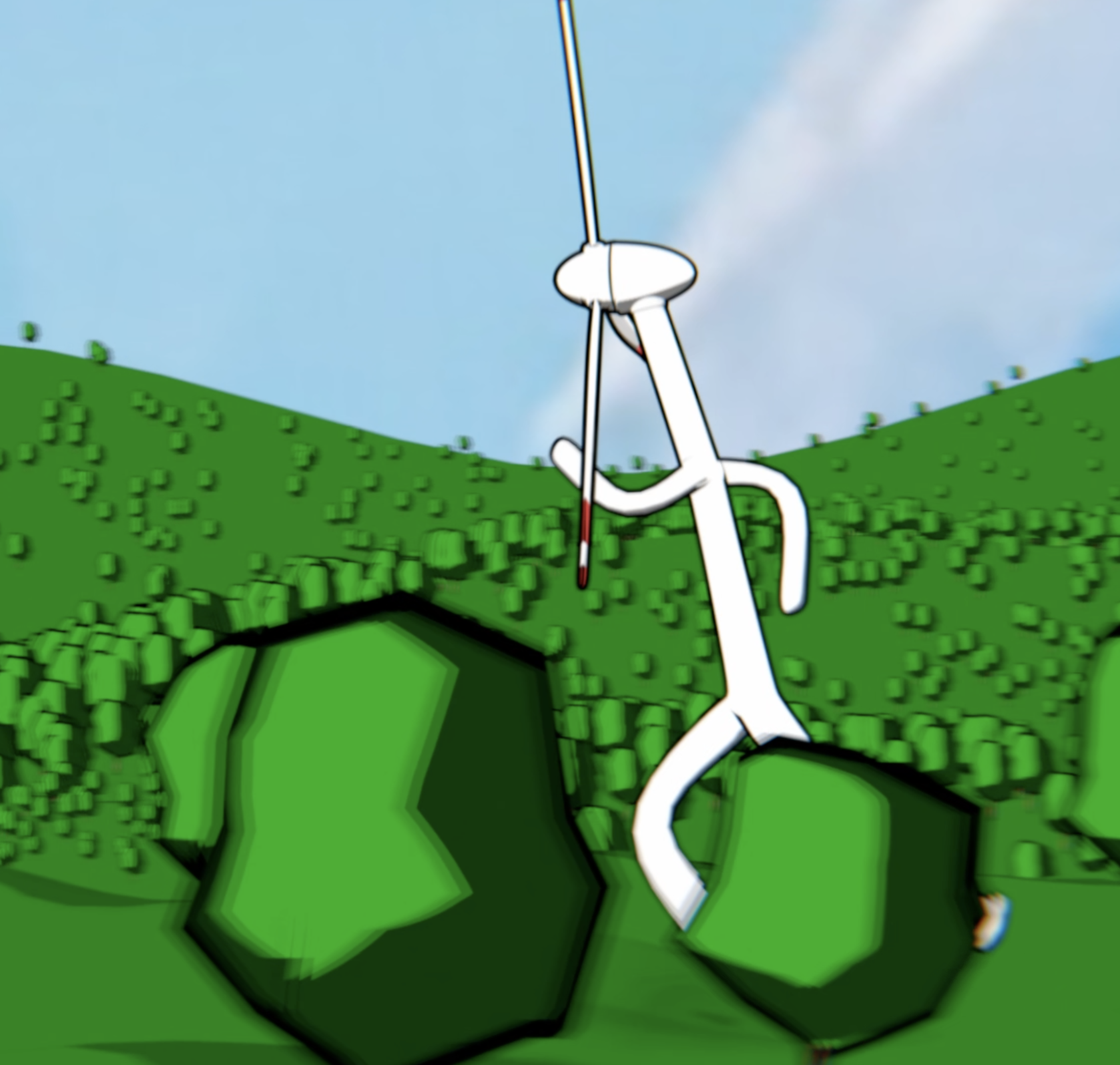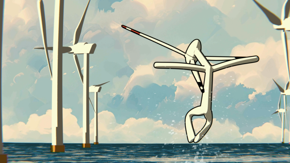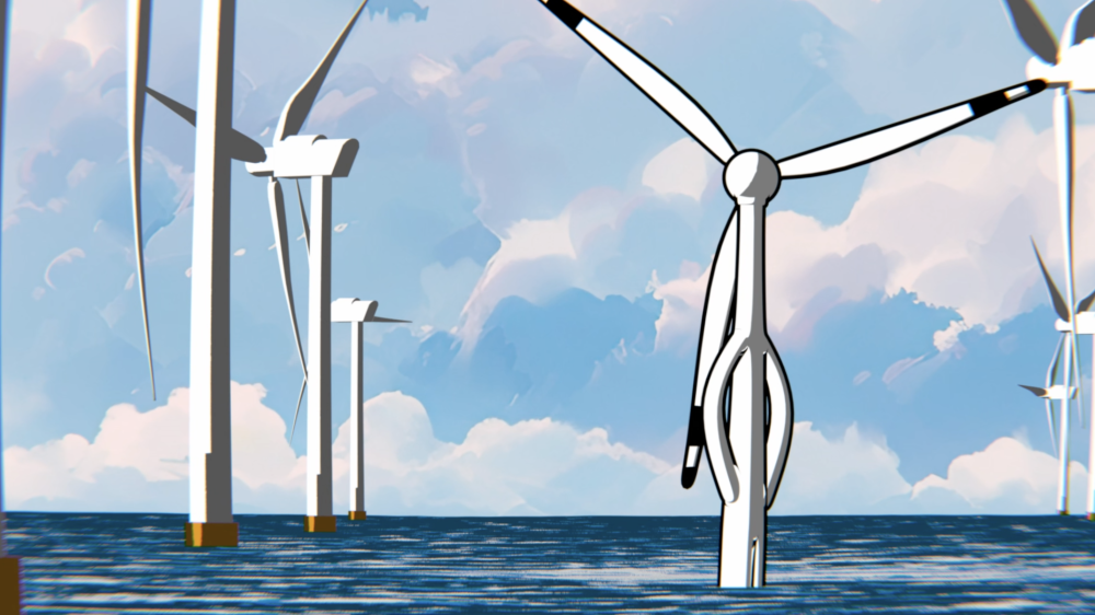 After the amazing video call with Henry where he gave clear insights into what he liked and what was important to him, I got to work to animate a first pass. This is an essential step to get a first idea for timing and to give the little turbine the courage and energy it deserves right from the beginning!