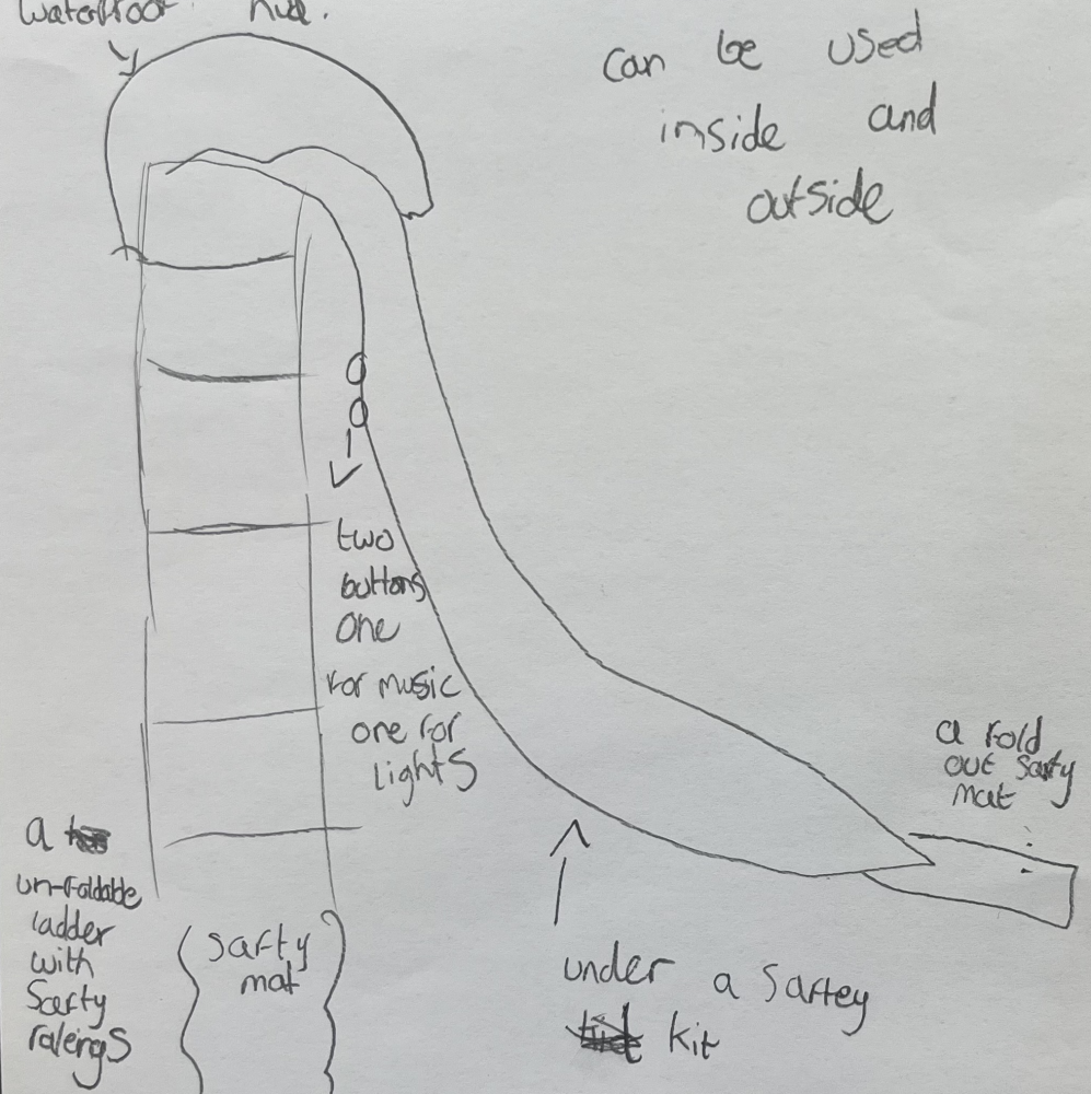 What a fantastic idea, Lucy! Your Safety Slide sounds like a dream for both parents and kids. 😊 Imagine all the carefree fun when guardians can relax with a good book while kiddos slide safely. Have you thought about what special materials or design elements would make it super safe and cosy? Keep dreaming and inventing, Lucy, you're on an exciting path to making playtime better for everyone! 🌟