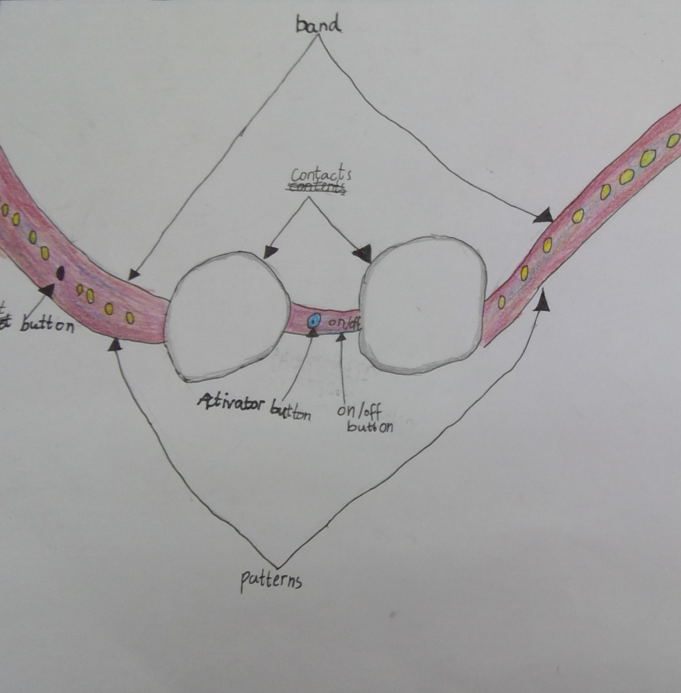 If the contacts are shining red, it means they are running out of energy. To charge The See Through Glasses, you must press one of patterns on the side. That will provide energy for the contact lens.