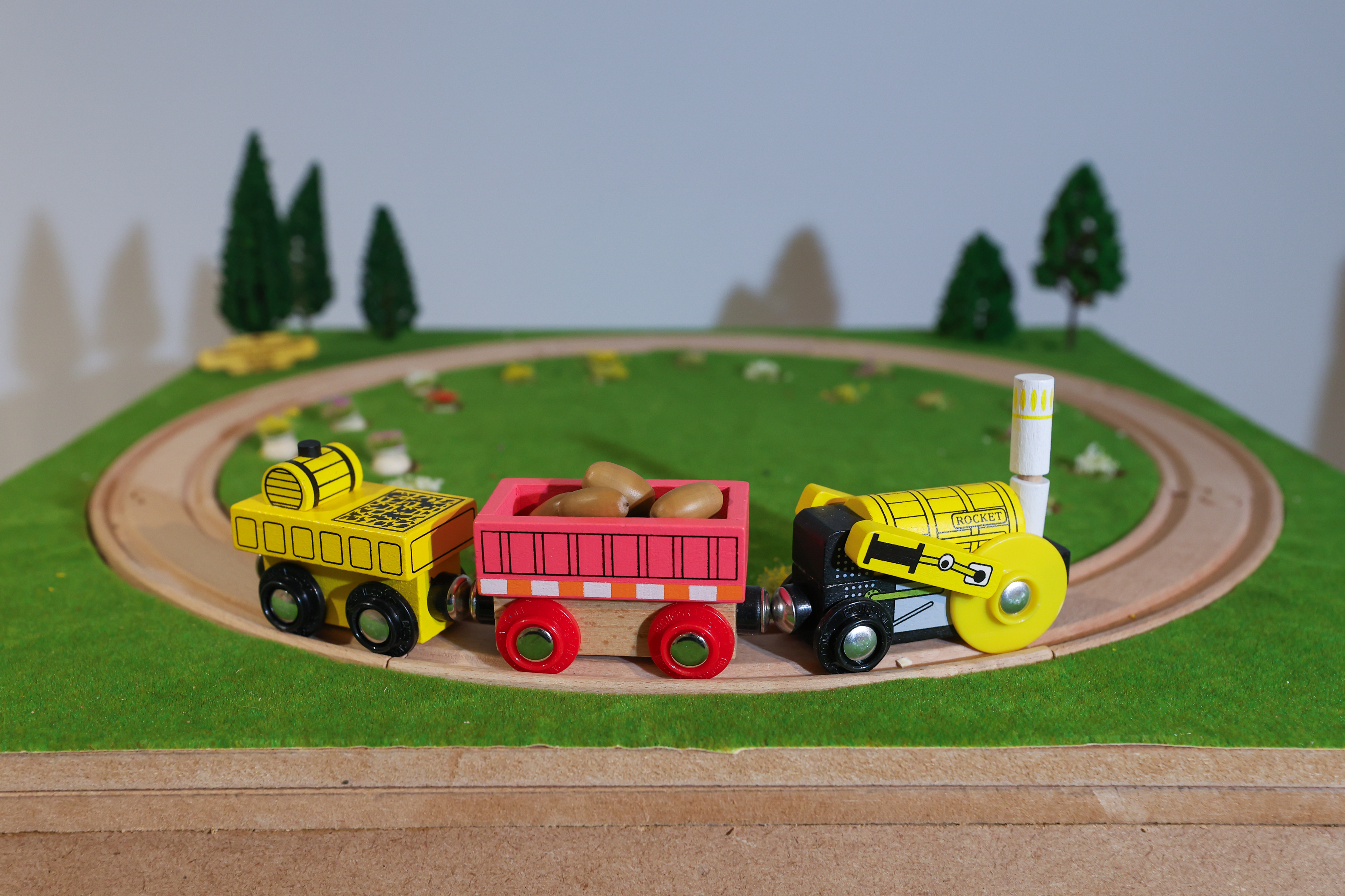 My plan is to move the train using magnets. There will be a little magnet stuck to the bottom of the train and a much bigger magnet that will be stuck to the turntable underneath the tracks. The benefit of doing this? It means we can move the train without actually touching it so that it looks like it's driving itself!